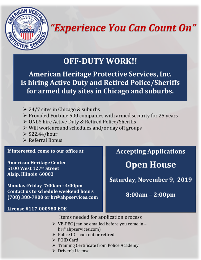 The following information may be of interest to both active & retired Lt.’s. Thanks to Retired Lt. Jim Maloney for the information about the security work Open House & Retired Lt. Frank Keller for the list of CPD Star magazines.